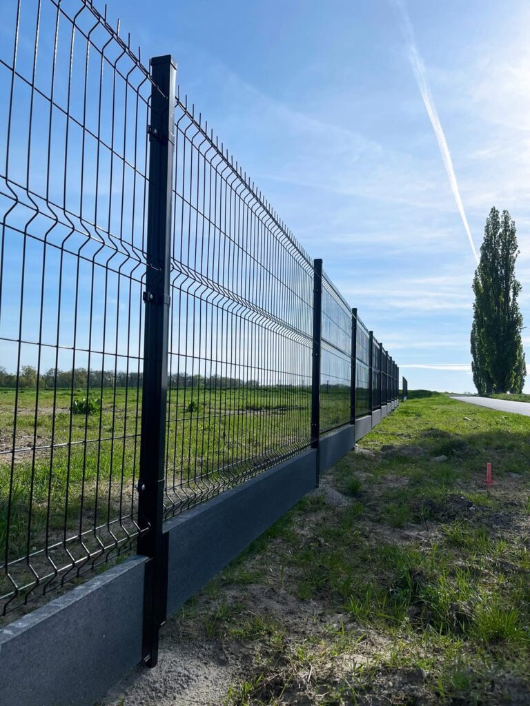 - Panele 2D: Mają podwójne druty poziome po obu stronach, oczka o wymiarach 50×200 mm. Dzięki temu są bardzo sztywne i wytrzymałe.